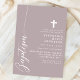 Celebrate the sacred occasion of a baptism with this elegant dusty lavender purple invitation. Featuring a minimalist design with modern script and a delicate cross, this invitation is perfect for inviting friends and family to join in this special event. The soft colour and simple, clean lines add a touch of sophistication and grace, making it ideal for such a meaningful celebration. Customise the details to create a unique and memorable invitation for your child's baptism.