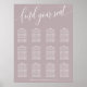 Welcome your guests with this elegant dusty lavender purple wedding seating chart. Featuring a minimalist design with modern script that says find your seat, this seating chart is perfect for a sophisticated and stylish wedding. The soft colour and clean layout provide a refined and organised look, ensuring your guests can easily find their seats. Customise with your names and table arrangements to create a unique and cohesive addition to your wedding decor. This seating chart accommodates up to 12 tables, making it ideal for a well-planned and elegant celebration.