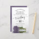 This beautiful budget or affordable wedding invitation features a romantic design with a single long-stemmed lilac, lavender, or dusty purple coloured rose laying on its side and reflecting in a pool of water. The typography features lacy script calligraphy and a sophisticated layout. The back is a deep marbled violet or purple colour. Wonderful way to invite your friends and family to share in your joy on your special day.