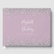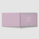This elegant wedding guest book features top and bottom borders of faux silver glitter on a dusty lilac background. Easily customise the white text with the names of the bride and groom in whimsical handwriting calligraphy over a large, pale lilac ampersand. Add additional text of your choice to the front and spine.
