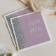 The left-hand edge of these elegant modern wedding napkins features a silver faux glitter design. The customisable text combines white handwriting and copperplate fonts over a large ampersand on a dusty lilac background.