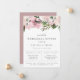 Watercolor floral arrangements in shades of dusty mauve and green, rehearsal dinner invitation. Chic and modern typography design. Back of card features solid dusty mauve colour.