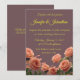 Set the tone for your perfect day with this elegantly designed wedding invitation featuring lush peach roses cascading across a sophisticated dusty mauve background. The warm antique gold script typography adds a touch of timeless luxury, creating a romantic and cohesive aesthetic that your guests will treasure.