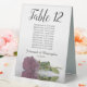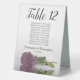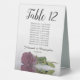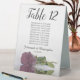 These tent table number signs are not only beautiful, they even include a list of names for the guests at each table, making it easy for your guests to find their seat at your wedding reception. The design is both elegant and romantic featuring a single dusty rose or mauve pink coloured rose lying on its side reflecting in water with waves and ripples. The title is in lacy script calligraphy with bold numbers so your guests can easily find the right table. There is room for the names of the couple and the wedding date.