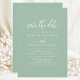 This minimalist save the date card features beautiful dusty mint hues paired with elegant calligraphy script. With a modern and simple design, this versatile card is perfect for any season - spring, summer, winter, or fall. It exudes a classy and stylish vibe, perfect for a romantic, chic, or sophisticated wedding theme.