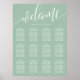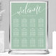 Help your guests find their places with ease using this elegant dusty mint wedding seating chart. The design features a modern, hand-lettered "Welcome" script in white, paired with a clean serif font for guest names and table numbers. Its sophisticated minimalist aesthetic and soft mint green tone make it a versatile choice that beautifully complements a variety of wedding themes, from romantic garden ceremonies to modern indoor receptions. This layout is perfectly structured for high readability, ensuring a smooth transition for your guests from the ceremony to the celebration. It provides a polished and professional touch to your special day's decor.