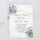 Dusty Navy Blue Gold Peony Watercolor Chic Wedding Invitation