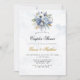 Design features a printed coloured with floral element in shades of dusty blue and gold over greenery leaves and peony and rose blooms. Great for your wedding celebrations!