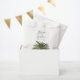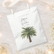 A unique palm tree-themed set of paper favour bags tailored specifically to your future wedding on the beautiful coast or island. They feature a minimal style illustration of a single palm tree. Above this rest the unique names of the bride and groom in an elegant cursive style font.