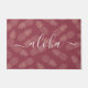 “Aloha”. Bring a bit of Hawaiian island hospitality into your home with this chic, modern doormat with white handwritten script typography over a graphic, pineapple pattern in dusty rose and champagne pink. Makes a great gift for a special friend, or even yourself!