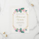 Design features an elegant geometric gold coloured (printed) frame decorated with watercolor flowers in shades of dusty pink and mauve with various types of greenery branches and leaves. Matching items available.