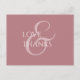 Beautiful chic and elegant wedding 'thank you' postcard. This memorable card features lovely set of contemporary fonts in ivory against a chic dusty pink background at the front. The back of the card includes text area and postcard elements also in dusty pink, against an ivory background.