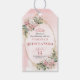 Elegant boho Quinceañera gift tag designed in soft blush pink and dusty pink tones with delicate floral details, eucalyptus greenery, and subtle rose gold accents. Perfect for Sweet 15 gifts, favors, and thank-you packages, adding a romantic and refined finishing touch to your celebration.