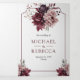 Dusty Pink Burgundy Floral Frame QR Code Wedding Tri-Fold Invitation