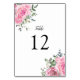 These wedding table numbers feature a modern watercolor botanical design with pink roses and eucalyptus foliage. The front and back of the cards have the same design. To order, enter your table number and click "Add to Cart" for each table number. Matching items available.