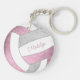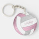 This cute volleyball keychain features the realistic image of a volleyball that has dusty pink, grey and white panels upon which you can customise her name - the pink and grey volleyball panels are blended with a girly floral kaleidoscopic pattern - by katz_d_zynes