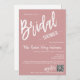 Create a personalised and splendid, chic, and minimalist Bridal Shower for the bride-to-be. This bridal shower invitation features spacious and beautiful calligraphy script writing on a dusty pink background. You can easily customise it with your own text and customise it to your liking. Please note: "Bridal" and "-Shower-" and "Registry" and "-at-"graphic artwork and other elements cannot be edited.