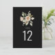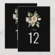 These elegant floral table number cards feature a modern watercolor design with dusty pink peach rose blooms and leaves on black background. They are double sided. Change the number text as required. Matching items available.