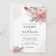 Dusty Pink Rose Boho Flowers Wedding Invitation