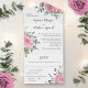 These all in one wedding invitations feature a modern watercolor floral design with dusty pink roses and eucalyptus leaf foliage. Personalise with your text. Other matching stationery and wedding reception products also available.