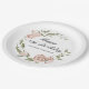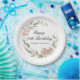 Add a special touch to your table decor with this perfect elegant design for a 70th birthday party paper plate. Happy Birthday is written in a formal script. The birthday celebrant's name is below in a traditional font. An open and airy modern pink rose wreath surrounds the text. Simple elegance for this special occasion. This is item is part of the Dusty Rose 70th Birthday Party collection. It contains the stationery templates you need to create a unique invitation suite and the customised templates to personalise your party supplies.