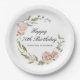Dusty Pink Rose Floral 70th Birthday Paper Plate