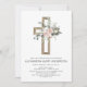 Dusty Pink Roses Gold Cross Floral Baptism Invitation