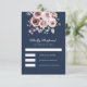 Dusty Pink Roses Navy Blue Wedding RSVP Card