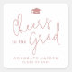 Simple and fun dusty pink modern cheers to the grad script, great personalised sticker for graduation party favour or gift.