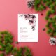 This elegant contemporary wedding invitation features watercolor painted dusty pink flowers on a white background.