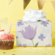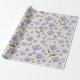 This wrapping paper features a pattern of dusty purple coloured flowers with green leaves set against a cream or ivory coloured background for a pretty and modern look.
