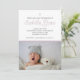 Use this sweet template to invite people to your baptism celebration for your baby with two spaces for photos. Lovely white, grey, and sort of dusty purple colour scheme.