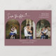 Take a look at this elegant modern minimal Save the Date three (tri) arch photo collage postcard that you can announce to your family and friends that you're getting married! This beautiful magnet features a stunning and beautiful handwritten script calligraphy font and heart paired with a classic serif font in a dusty purple background for a truly timeless look. It's perfect for your wedding theme! Customise the names and replace the photos with yours and the month, day, and year (two digits), your QR Code, and wedding website URL to give your save the date announcement postcard a nice personal touch. Please note: The "Save the Date" wording and heart cannot be edited, changed, or deleted. You can customise and personalise the postcard to fit your wedding event needs.