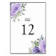 These wedding table numbers feature a modern watercolor botanical design with purple roses and eucalyptus foliage. The front and back of the cards have the same design. To order, enter your table number and click "Add to Cart" for each table number. Matching items available.