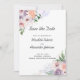 Will you be holding your wedding ceremony in the spring or summer? Then this beautiful watercolor Save the Date card sets the tone with lush boho floral bouquets in pastel shades of dusty purple, peach, blush pink, and green. Accenting the flowers are brush strokes of sparkly iridescent glitter. All text on front and back of the card can be easily personalised by you on the template. This version of the card displays a QR code graphic on the back which you can change to your own wedding's QR code using the same personalisation template. We also have a version of this card without the QR graphic.