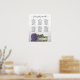 This elegant wedding seating chart has table assignments for 60 guests at ten people per table. It features a beautiful design with a dusty purple or lavender coloured rose reflecting in water with waves and ripples. The lacy script calligraphy title reads "please find your table" There is space for the names of the wedding couple as well as the wedding date.