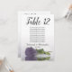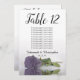 These beautiful table number cards will make it easy for your guests to find their seats at your wedding reception. They feature a simple yet elegant design with script calligraphy lettering and a single long-stemmed dusty purple coloured rose lying on its side reflecting in water. The card includes a seating chart with 10 names. There is also space for the couple's names and wedding date. This card is available in a variety of sizes and is larger than our standard table number cards.