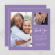 This sweet dusty purple and white card has placeholders for two sizes of pictures to thank your guests. You can use the back of the card for your handwritten message. It can be used for any occasion or celebration to show your appreciation