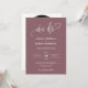 This invitation features an elegant "we do" calligraphy and simple sans serif typography font with an arch shape photo and QR code in a dusty purple background. The simplicity and clean design of this invitation works well with all wedding themes and definitely a great addition to your wedding.
