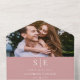 This chic minimalist all-in-one wedding invitation can be personalised with your special photo, monogram initials and wedding day information on a dusty rose background. The invitation includes a perforated RSVP with your wedding website QR code and details. Designed by Thisisnotme©