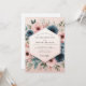 Delicate floral artwork in dusty rose and deep teal hues evokes a romantic, whimsical mood. Lush blossoms and verdant foliage create an enchanting backdrop for your special day. This design radiates ethereal elegance.