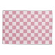 Pink and white checkerboard pattern with evenly spaced squares. The design is simple, creating a playful and retro feel.