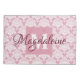 This beautiful pillow case features a classic white damask pattern over a dusty rose or pink background. The design is personalised with a monogram initial letter as well as a customisable name. Perfect for decorating any bedroom, apartment or dorm room. Great gift for a girl going off to college who wants a classic yet elegant style on her bed.