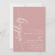 Invite loved ones to celebrate your special day with this elegant dusty rose wedding invitation. Featuring a minimalist design with a beautiful calligraphy script for the word "wedding" and clean, modern typography for the details, this invitation sets the tone for a sophisticated and memorable event. The soft dusty rose colour and simple lines add a touch of grace and refinement, making it ideal for a stylish wedding celebration. Customise the details to create a unique and beautiful invitation for your wedding day.