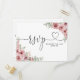 An elegant heart script dusty rose floral RSVP card. The reverse features your details and a fun guest song request. Designed by Thisisnotme©