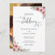 Dusty Rose Floral Hearts Script Photo Wedding Invitation