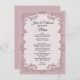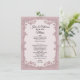 Chic dusty rose wedding table menu with graphics of a rose flower garland frame. Lovely addition to your wedding reception tables. Personalise the text for your reception needs.