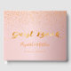A guest book for a glamourous, elegant and modern wedding. A chic dusty rose gradient background with golden confetti sprinkle. The text: Guest Book is written with trendy faux gold letters. The names and date are written with a hand lettered style script, golden letters. Template for your text on the spine, grey text.