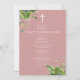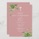 Dusty Rose Greenery Monogram First Holy Communion Invitation