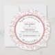 Dusty rose leaves pattern round wedding invitation. The focus of this lovely wedding invite is a floral pattern made of leaves in dusty rose pink and a white frame with scalloped dusty rose pink outline that holds your wording.